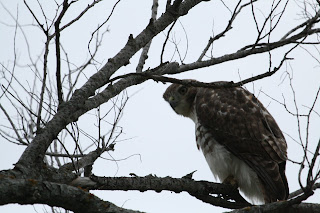 I had the path to myself last week when I came around a bend and saw this stunning juvenile red-tailed hawk. As I tip-toed closer, she did not seem threatened by me at all. I was able to kneel near the tree and observe her for about thirty minutes. I was about twenty feet away, which is the closest I’ve ever been for this length of time. Perhaps her youth gave her the daring to tolerate me while I took hundreds of pictures. Click on pictures to enlarge.