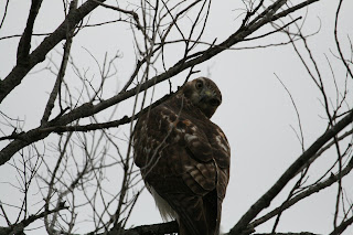 I had the path to myself last week when I came around a bend and saw this stunning juvenile red-tailed hawk. As I tip-toed closer, she did not seem threatened by me at all. I was able to kneel near the tree and observe her for about thirty minutes. I was about twenty feet away, which is the closest I’ve ever been for this length of time. Perhaps her youth gave her the daring to tolerate me while I took hundreds of pictures. Click on pictures to enlarge.
