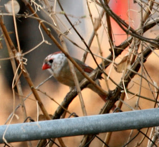 The robins are scouting out a nest. The cardinals and starlings seem to be pairing up (not with each other). And it looks like the sparrows are building at our neighbor’s house. However, the starlings and sparrows seem to be competing for the same piece of real estate. We’ll see who ends up with it. No housing collapse here. Click on pictures to enlarge.
