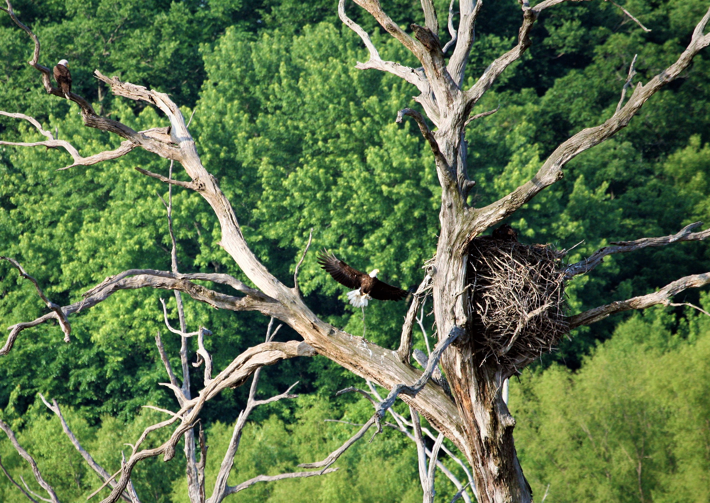 Respect them or lose them Day 77. Bald eagle nest photographed June 5, 2009. In 2009, this nest was approximately twenty years old. They built a new nest nearby a few years later. Canada geese nested there that year. Another year passed and a storm knocked the nest down. Bald eagles are amazing at construction and must have known this nest was getting too old and too heavy to withstand the Kansas weather so they constructed a new nest and moved out before this one failed.