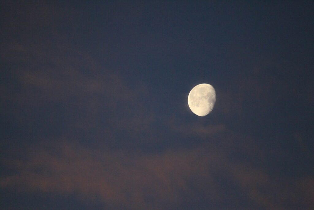 It was a nice mild morning at the wetlands. The moon was beautiful and there are more spring arrivals every day. This morning, I spotted a common yellowthroat (very common at the wetlands!), orchard orioles, and a yellow-breasted chat. The chat was not so accommodating with the photographs. I tried, but he kept moving from the top of one tree to another and always obscured by leaves, so the pictures were not so good. I will keep trying as I’ve seen him in the same place every spring for the past few years. I saw the start of a woven nest—maybe an oriole’s work? The highlight of the morning was watching an osprey fishing!